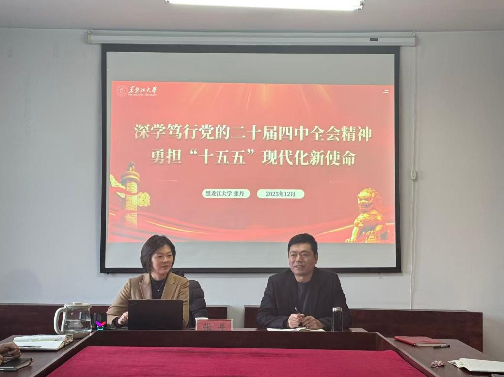 为进一步深入学习贯彻党的二十届四中全会精神,12月11日,满学研究院直属党支部于社科楼531召开专题宣讲会,邀请马克思主义学院党委书记张丹作题为《深学笃行党的二十届四中全会精神,勇担“十五五”现代化新使命》的专题讲座。会议由直属党支部书记周丽波主持,学院全体教师参加会议。