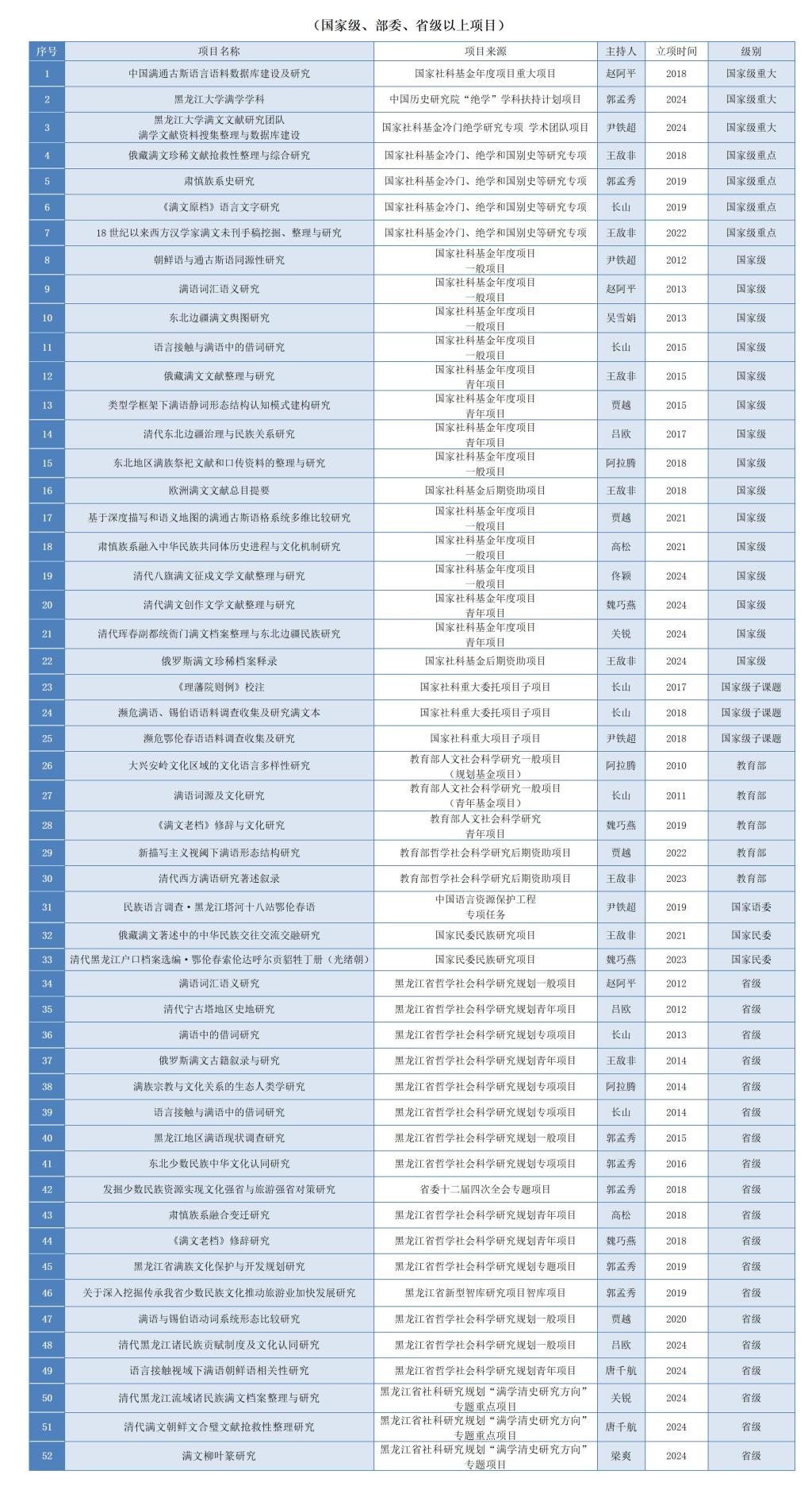 满学研究院科研项目成果一览表